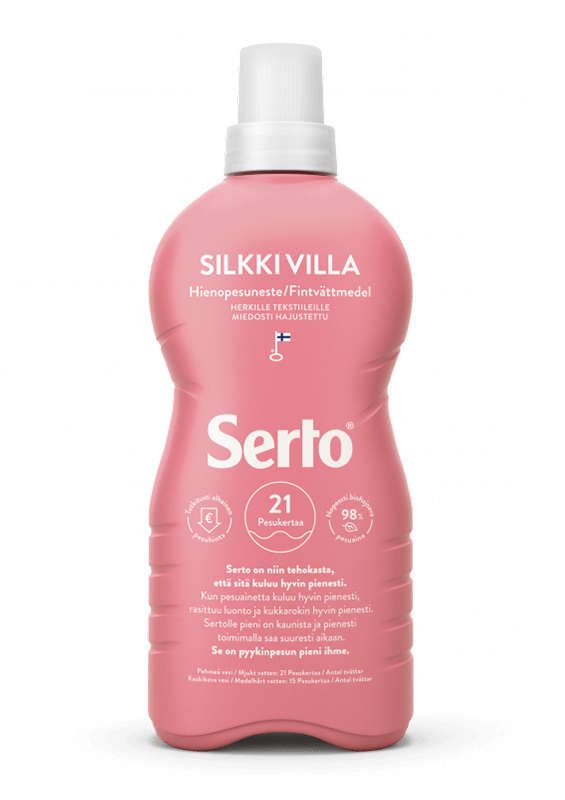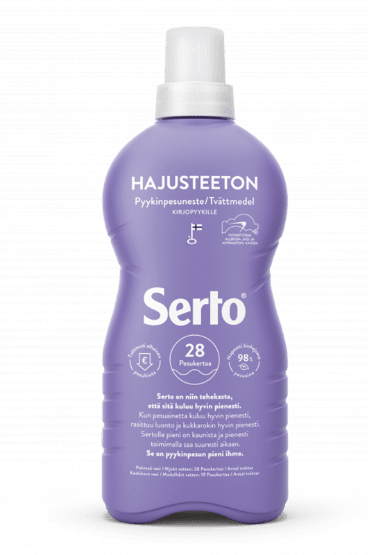 Serton pyykinpesunesteistä löydät kotimaiset, tehokkaat ja riittoisat pesuaineet kaikille vaatteille ja tekstiileille. Kirjaville kuoseille, urheiluvaatteille, herkille kuiduille, valkoisille ja tummille tekstiileille. Millainen vaate, sellainen pesuaine. Kaikki pyykinpesunesteemme ovat zeoliitittomia ja fosfaatittomia.