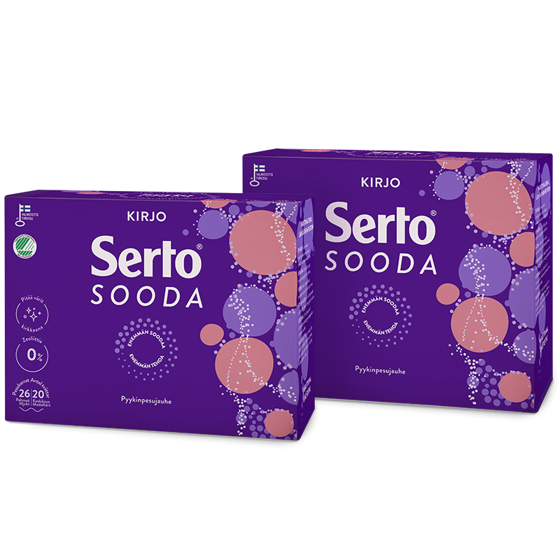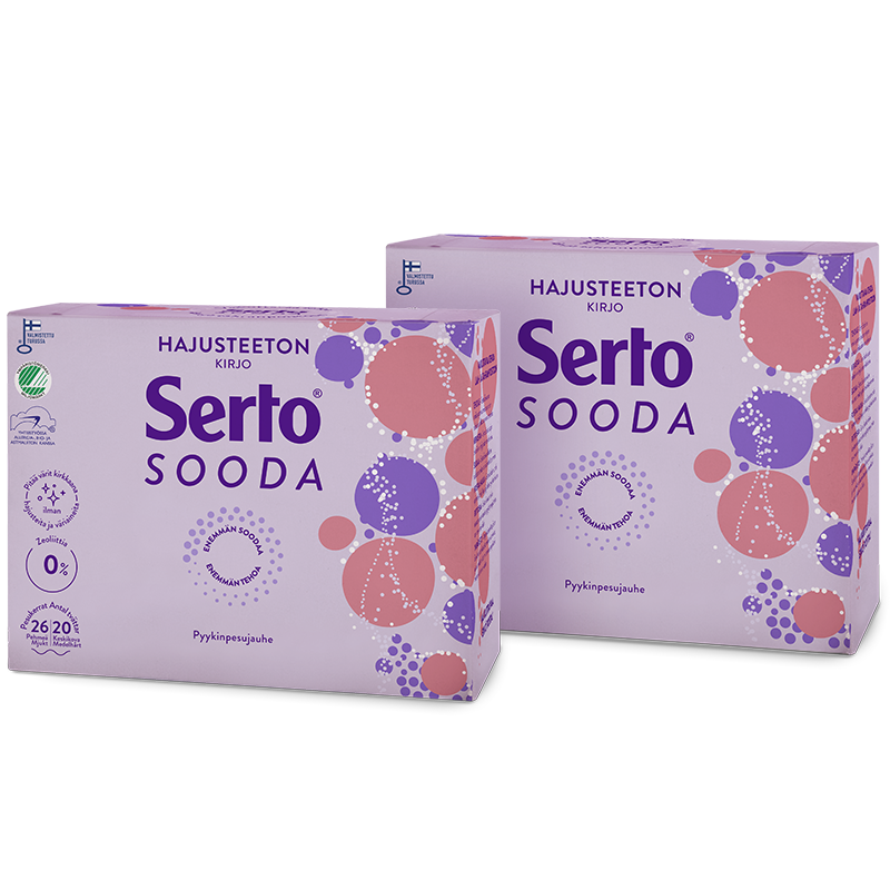 Soodapohjainen tahranpoistaja taklaa tiukimmatkin tahrat – luonnollisesti! Serton uusi Hajusteeton Tahrasooda on tehokas soodapohjainen tahranpoistojauhe kirjo- ja valkopyykille. Tahrasoodan avulla saat poistettua pyykistä vaikeimmatkin tahrat, kuten marja- ja rasvatahrat. Serto Tahrasooda on hellävarainen tekstiileille, estää niiden nukkaantumista, pitää värit kirkkaina sekä…